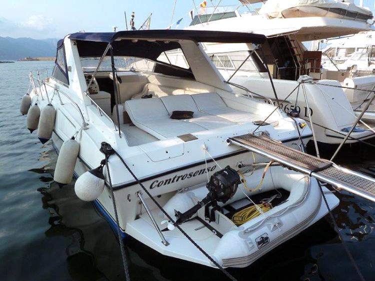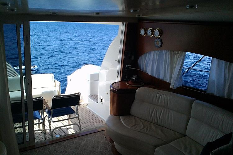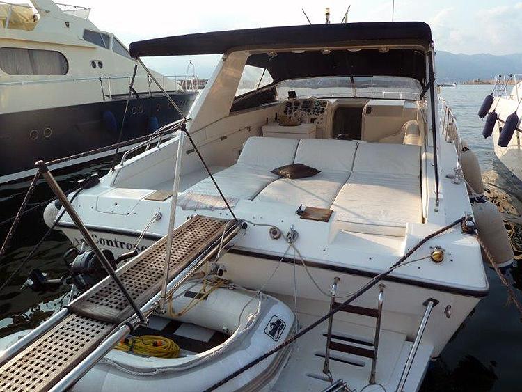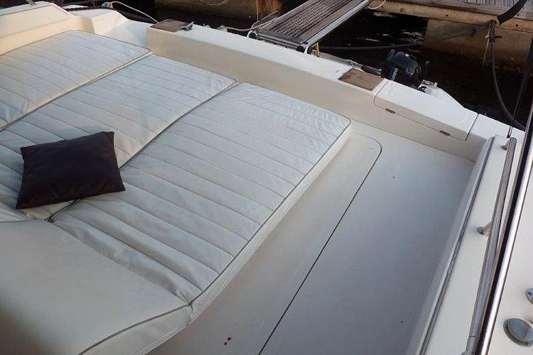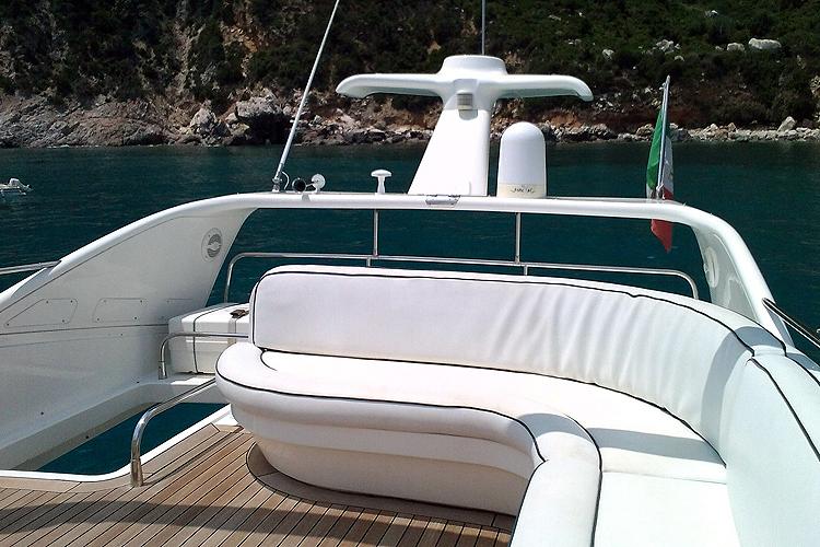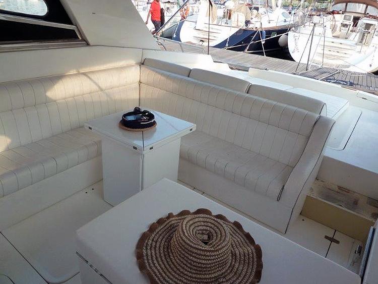 Aria condizionata con zone separate, 2 TV LCD +DVD, ricevitore TV digitale terrestre, lavatrice, forno microonde, radio Hi-FI con comandi separati, cuscineria di poppa, cuscineria di prua, cuscineria fly, tendalino integrale fly, frigorifero interno, frigorifero a pozzetto, piastra fuochi a gas sul fly, lavatrice, microonde, piastra cucina interna elettrica a 4 fuochi, prese interne 220v, piano calpestio flybridge in teak, tendalini norvegesi completi, copertura invernale Fly completa. Servizio piatti/posate in PVC "stile nautico", set asciugamani personalizzati. Pozzetto, fly e spiaggetta in teak; battello di servizio/tender da 250 cm. con motore 5 HP.